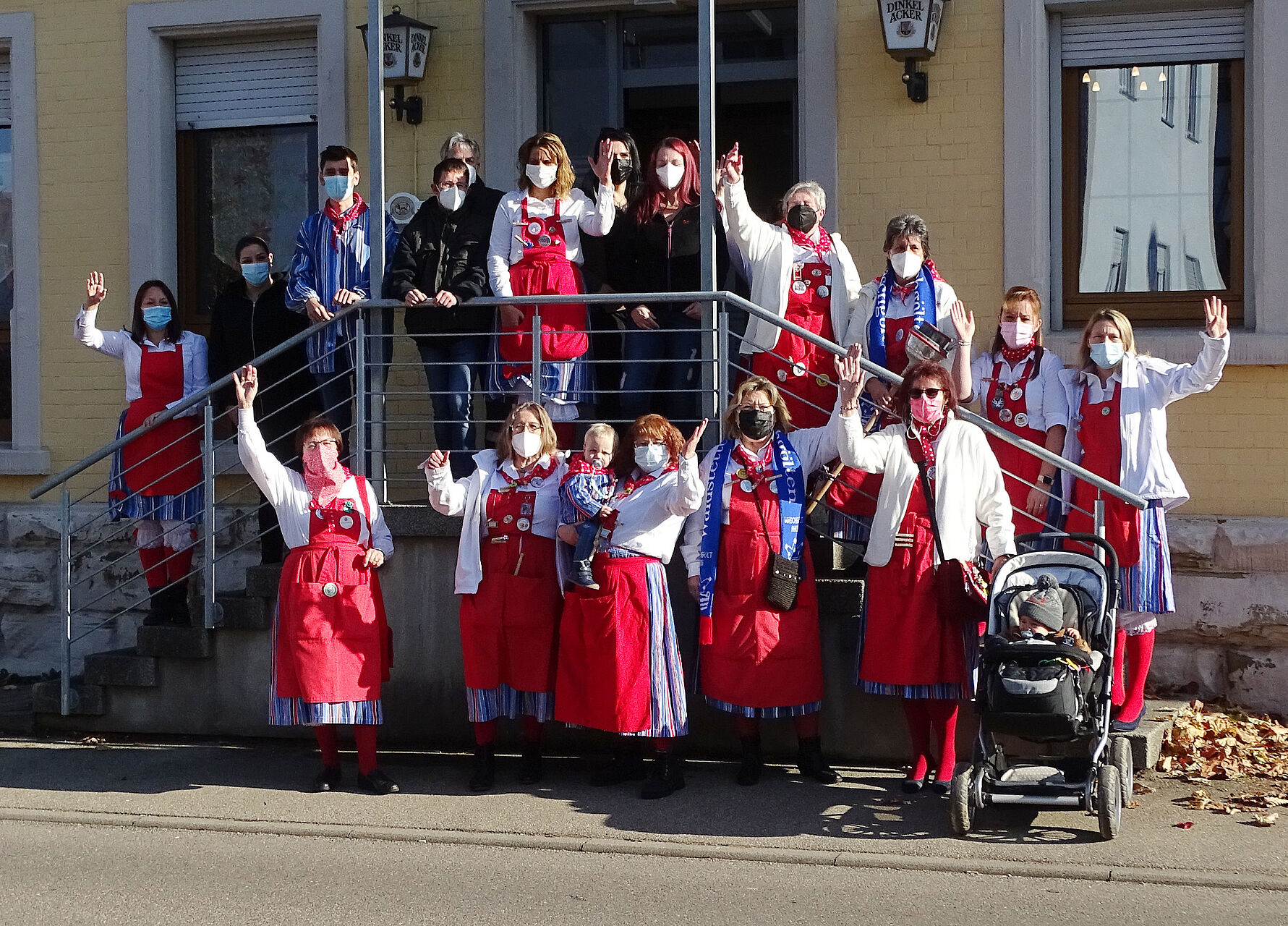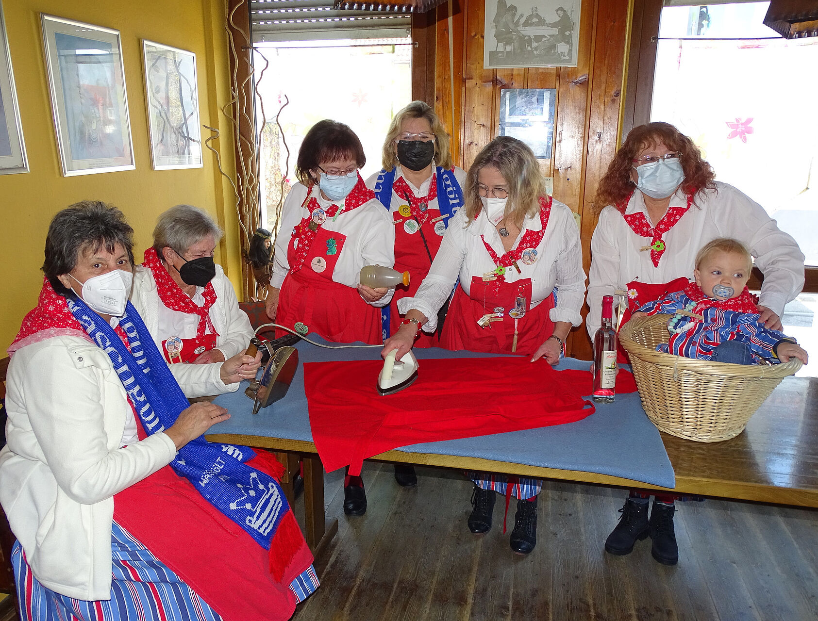 Was am Aschermittwoch vor zwei Jahren mit der Schurzwäsche endete, wurde am 11.11., pünktlich um 11.11. Uhr, nach einer pandemiebedingen Zwangspause in der Gaststätte Rose 'n' Stoi mit dem Schurzbügeln wieder ins Leben gerufen: die Faschingssaison der Waldstetter Wäschgölten. Dem närrischen Büttel Ingo Nuding war es vorbehalten, mit drei Startschüssen die fünfte Jahreszeit zu eröffnen und endlich schallte wieder laut und deutlich „Wäschgölt ahoi“ durch die Gaststätte und darüber hinaus, hatte man sich doch viel zu lange lediglich mit einem leisen und traurigen „W.A.“ begrüßt. Zahlreich waren die Wäschweiber und -männer, alle natürlich in ihren schicken Kostümen und Anzügen, der Einladung der Oberwäschweiber Elke Kamitz und Claudia Schlosser zum Sekt- und Weißwurstfrühstück gefolgt und feierten das Ende der Trauerzeit bei bester Stimmung. Und wie es sich traditionell so gehört, wurden die zerknitterten roten Schürzen der Waschweiber glatt gebügelt und wieder auf Vordermann bzw. Vorderfrau gebracht.